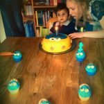 Mijn zus Lilian is daarentegen supercreatief en heeft de afgelopen twee verjaardagen van mijn neefje Luka al twee hele mooie taarten in elkaar geknutseld. Voor zijn eerste verjaardag maakte ze een geweldige koekiemonstertaart, inclusief cupcakes waarbij alle koekiemonsters een chocolate chip cookie in hun mondje hadden. Voor zijn tweede verjaardag maakte ze een taart van Bumba, het hyperactieve clowntje waar menig peuter gek op is volgens mij. Leuke inspiratie dus voor als je ook een kindertaart wilt maken. Inmiddels heeft mijn zus nog een dochter gekregen, die inmiddels alweer één is. Voor haar maakte ze een roze met paarse taart in de kleuren en design van haar geboortekaartje.